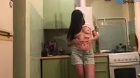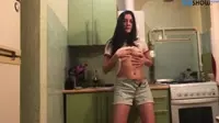 The brunette stands tall in the dimly lit kitchen, her eyes twinkling with mischief as she catches the mans gaze.Dressed in a tightfitting skirt and a blouse, the sexiest elements of her outfit are accentuated by the way it clings to every curve.Her long, slender legs tempt him further as they extend beneath the table, while the silhouette of her perky tits straining against the fabric of her blouse gives him a taste of what awaits him.He is captivated, his hunger growing with every second he spends devouring her with his eyes.The brunette knows her audience well, and her striptease begins by teasingly touching the edges of her blouse before unbuttoning it slowly.With each undone button, the mans cock twitches with anticipation, growing harder by the second.Her shapely body, clad in lacy underwear, starts to reveal itself as she pushes the blouse off her shoulders.The brunettes eyes never leave his as she slips off her skirt, her ass teasingly swaying with every movement.The sight of her toned thighs and round ass cheeks are a vision that only intensifies the mans desire.He watches with bated breath, unable to look away from the vision unfolding before him.Her hands continue their tantalizing dance as they reach for the lacy underwear, leaving no detail unattended.As she pulls aside the crotch of her underwear, the mans mouth watering at the sight of her shaven pussy lips peeking out.The brunette teases him with a single touch to her clit, bringing herself to the edge of climax before retreating.The sexual tension in the room becomes palpable, the air thick with the scent of lust and arousal.The man rises to his feet, his cock straining against his jeans as he approaches the brunette.He cant contain himself any longer, and as his hand finds its way to her ass cheek, pulling her close to him, she lets out a moan of desire.Their lips meet, kissing passionately as their hands explore each others bodies further, moving in tandem towards the promised ecstasy.As they become one with each other, the man slides his cock deep inside her pussy, filling her to the brim and making them both moan in delight.Her tight pussy grips him tightly as they start to move together in harmony, their bodies gliding against one another with a level of intimacy and passion rarely seen between two lovers.As he picks up his pace, her body begins to writhe with desire, her tits bouncing enticingly with each thrust.Her own hands roam down her body, fondling her perky nipples before sliding lower to tease her clit while they fuck.The brunettes lustful cries fill the air as she approaches the peak of her pleasure, her ass cheeks clenching and unclenching rhythmically on his balls.Her climax is swift and powerful, the orgasmic spasms causing her body to convulse wildly around his cock.Unable to withstand the fun any longer, he pulls out, painting her pussy with his cum as a testament to their shared pleasure.The brunette and the man collapse on the kitchen floor, spent and breathless, basking in the afterglow of their passionfilled tryst.